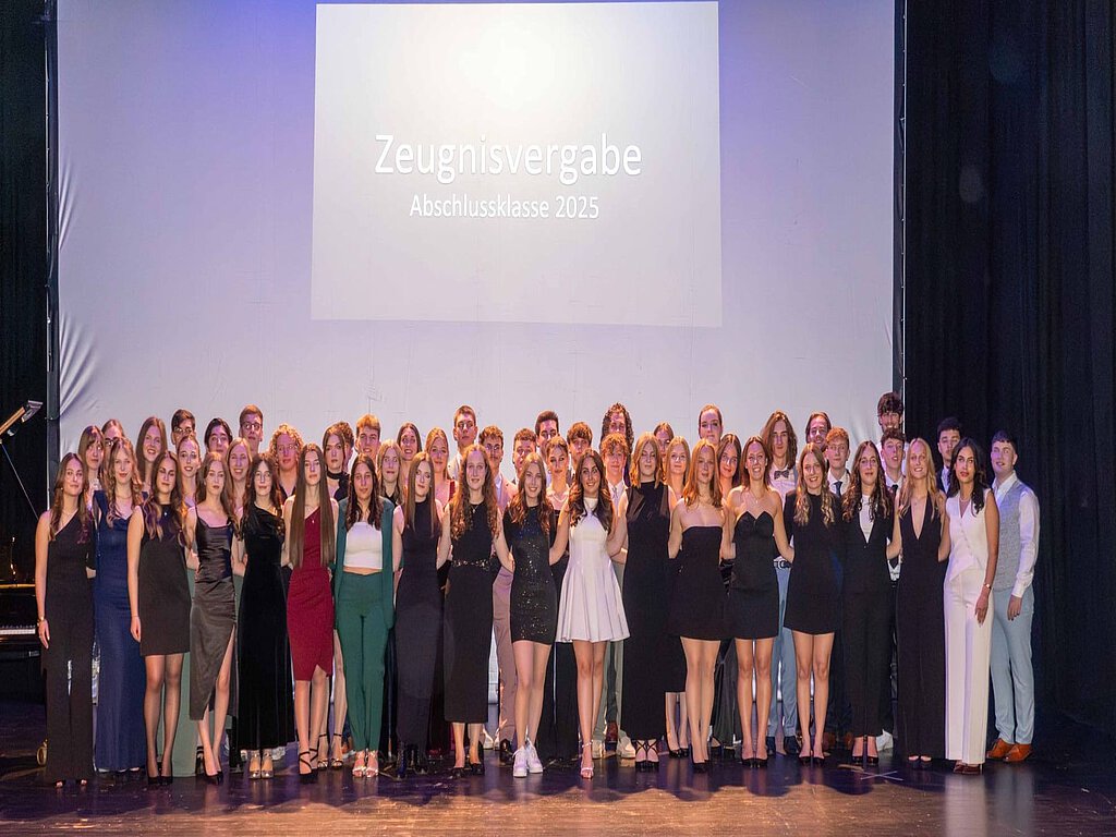 Allen 54 Abiturientinnen und Abiturienten des Gymnasiums an der Heinzenwies konnte Schulleiter Frank Huck am vergangenen Donnerstagabend im Stadttheater Idar-Oberstein zum bestandenen Abitur gratulieren. Diesem Glückwunsch schloss sich Landrat Miroslaw Kowalski an, der anlässlich der Feier auf sein eigenes Abitur vor 41 Jahren zurückblickte und den Schülerinnen und Schülern den Ratschlag mitgab, die in der Schule entstandenen Lebensfreundschaften zu pflegen, eine Gemeinschaft wie in der Schule erlebe man später nur noch ganz selten. Nachdem Merle Fuhr und Greta Kliebisch, begleitet von Angelina Bauer am Klavier und Jan-Erik Huhmann an der Gitarre, „Won’t forget these days“ von Odeville gesungen hatten, ergriff Mirko Hellwig als Elternvertreter das Wort. Die frisch gebackenen Abiturientinnen und Abiturienten, so Hellwig, erlebten gerade Geschichte in Echtzeit. Gleichzeitig habe diese Generation aber auch das Privileg, Veränderungen anzustoßen und so gab er den jungen Erwachsenen der Generation Z mit: „Bleibt kritisch und unbequem! Habt Mut, groß zu träumen!“ Für das Kollegium erinnerte Studiendirektor Jan Schwab, der gleichzeitig auch als Vater betroffen war, an die vergangene Schulzeit der Heinzenwieslerinnen und Heinzenwiesler: Vor neun Jahren habe er den Jahrgang am letzten Montag im August 2016 bei der Schuleinführungsfeier als Orientierungsstufenleiter begrüßt, nun dürfe er ihn verabschieden. Seitdem hätten die Schülerinnen und Schüler tausende Unterrichtsstunden erlebt, ca. 150 Klassen- und Kursarbeiten geschrieben, fundiertes Schulwissen und wichtige Arbeitstechniken erlernt, viele schöne Fahrten u.a. nach Hattgenstein, Prettau, Berlin, Rom und London mitgemacht, aber auch schwierige Zeiten wie die Corona-Einschränkungen oder den Tod der beiden Lehrer Carsten Thiel und Ludger Probson erlebt, an deren Verdienste Jan Schwab in diesem Zusammenhang noch einmal erinnerte. Mit einem Augenzwinkern merkte er am Ende an, bei seiner Rede habe es sich in den digitalen Zeiten des Fremdschreibens von Texten um eine garantiert KI-freie Ansprache gehandelt. Er rief zum bewussten Umgang mit der Digitalisierung des Alltags auf und gab den Abiturientinnen und Abiturienten gemäß Immanuel Kant mit: „Seid aufgeklärt! Gebraucht euren eigenen Verstand!“ Anschließend war noch einmal Merle Fuhr in Begleitung von Jan-Erik Huhmann mit dem Song „I“ll be over you“ von Toto zu hören, bevor für die Abiturientinnen und Abiturienten Johanna Meigen und Leopold Busch Abschied von der Schulzeit nahmen. Etwas wehmütig blickten sie zurück auf die „beste Zeit unseres Lebens“, vor allem auf die Oberstufenzeit. Und sie stellten mit Blick auf ihre heterogene Stufe fest: „Erfolg ist individuell. Manche wollen Arzt werden, andere nur Influencer. Hinter jeder Note steht eine ganze Geschichte.“ Und damit näherte sich der Abend seinem Höhepunkt, der feierlichen Überreichung der Abiturzeugnisse durch Schulleiter Frank Huck und Oberstufenleiter Frank Becker. Zu einem selbst gewählten Musikstück wurde jede Abiturientin und jeder Abiturient feierlich auf die Bühne gebeten.