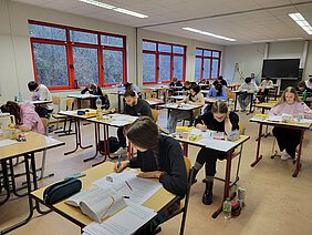 Den Abschluss des schriftlichen Abiturs machte in diesem Jahr das Fach Französisch am 29. Januar. Neben einem sehr anspruchsvollen Lese- und Hörverstehen konnten die Französisch-Abiturientinnen und –Abiturienten sich mit der Frage beschäftigen, ob Social Media-Plattformen ab 22 Uhr schließen sollen. Schließlich, so der Text, seien Bars und Casinos auch nicht rund um die Uhr für Jugendliche geöffnet. Eine brisante Frage, mit der sich derzeit viele europäische Gesellschaften auseinandersetzen. Wer sich lieber mit einem literarischen Thema beschäftigte, griff zum zentralen Thema des Ministeriums: Ein Romanauszug erzählte von einem Mädchen mit vietnamesischen Wurzeln, das von zuhause nie Lob erhält und sich in Bücher flüchtet, um die Abenteuer der Buchhelden zu erleben.