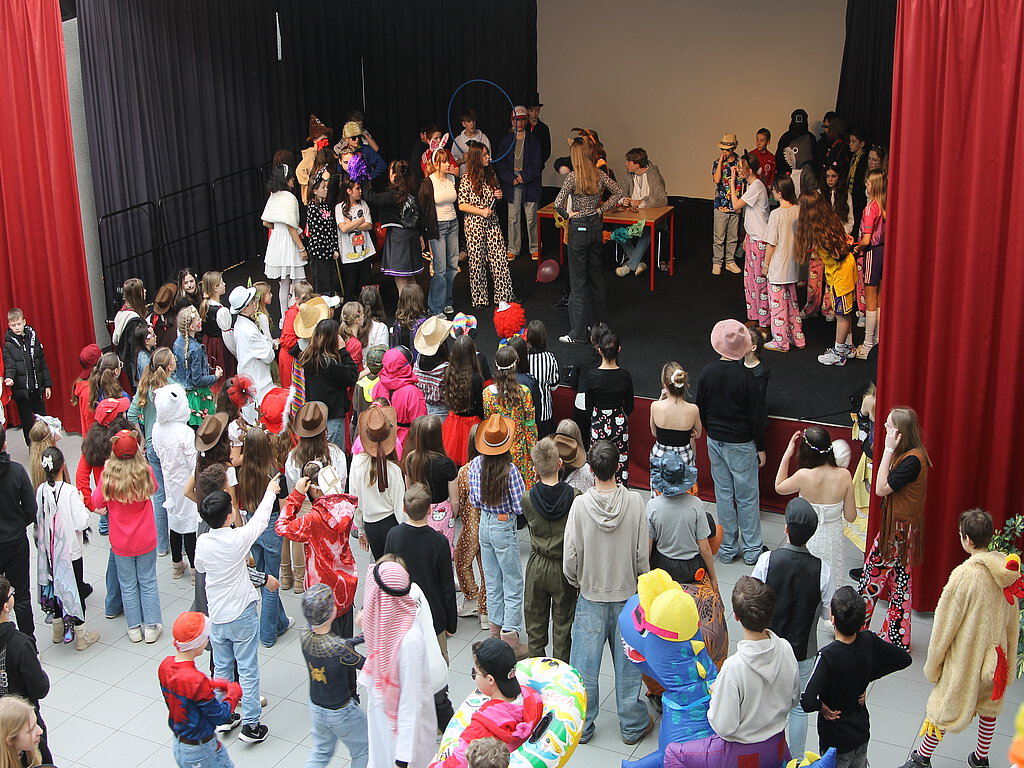 Leoparden, Marienkäfer und Hasen einträchtig neben Riesendinos in Braun und Blau – das gibt es nur beim Faschingsball der Heinzenwies. Am dicken Donnerstag tummelte sich in der Schulaula ein prächtiger Kostümreigen: Ob als Hexe, Scheich oder im Fantasiekostüm, die Schülerinnen und Schüler der Klassenstufen 5 bis 7 hatten jede Menge Spaß bei Faschingsmusik und Spielen, die die SV der Heinzenwies mit den Verbindungslehrern Christine Heinen und Florian Schinz organisiert hatte. Und sogar Kamelle gab es…
