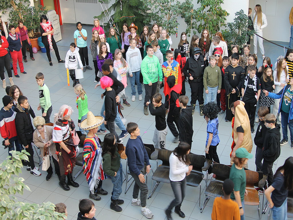 Buntes Faschingstreiben herrschte am gestrigen Mittwoch in der Aula des Gymnasiums an der Heinzenwies. Die SV hatte für die Klassen 5 bis 7 ein kurzweiliges und unterhaltsames Faschingsprogramm organisiert. Da wurde im großen Kreis die Reise nach Jerusalem gespielt, Faschingsschlager ertönten und das beste Kostüm wurde prämiert. Unter Konfettiregen und Luftschlangen, die durch die Luft zischten, tummelten sich Monster, Katzen, Mexikaner mit breiten Sombrero-Hüten, Clowns und frei zusammengestellte Fantasiekostüme aller Art. Hauptsache bunt. Schön, dass solche Feiern nach der zweijährigen Coronazwangspause wieder möglich sind, so die einhellige Meinung.