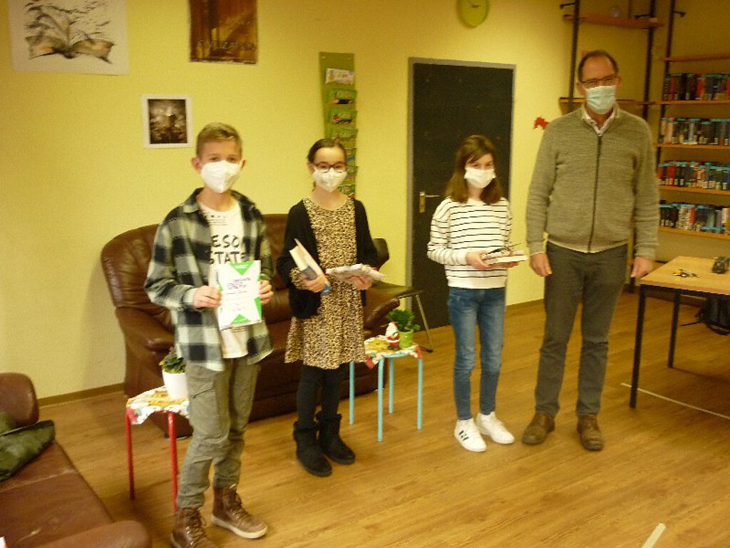 Diese drei bereits gewählten Sieger kamen dann am Montag, dem 13.12.2021, in der 4. Stunde in der Bibliothek zusammen, um den Wettkampf im Vorlesen untereinander auszufechten – mit Worten versteht sich.