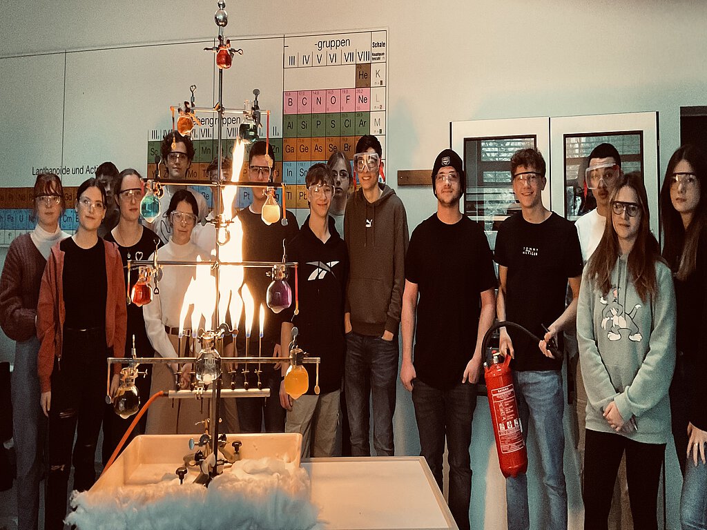 Der Leistungskurs Chemie der Jahrgangsstufe 11 hat einen weihnachtlichen ChemisTree gebaut. Anlass hierfür ist die Teilnahme an der diesjährigen ScienceTree-Competition. Der Kurs hofft natürlich auf ein erfolgreiches Abschneiden, freut sich aber auch der ganzen Schule damit naturwissenschaftliche Grüße zur Weihnachtszeit zu senden.