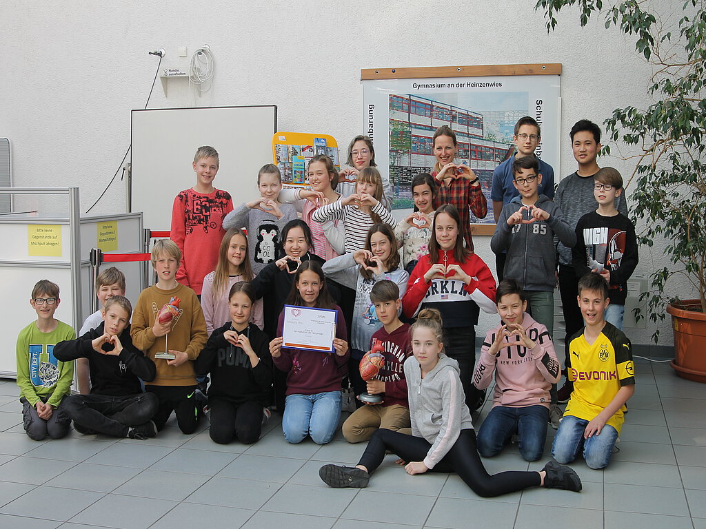Für ihren engagierten Einsatz beim Wettbewerb der Kinderakademie Gesundheit der Stiftung Mainzer Herz belegte die Klasse 6c des Gymnasiums an der Heinzenwies den dritten Platz und erhielt 100 Euro für die Klassenkasse. Zusammen mit ihrer Lehrerin im Fach Naturwissenschaften Stephanie Kraemer hatten die Schülerinnen und Schüler verschiedene Aktionen gegen das Rauchen gestartet. So nahmen sie Kontakt zum Bürgermeister der Stadt Idar-Oberstein Frank Frühauf auf, um darauf aufmerksam zu machen, dass Kaugummiautomaten, die für Kinder interessant sind, nicht in Kombination mit Zigarettenautomaten aufgehängt werden sollten. Ferner setzten sie sich beim Birkenfelder Bürgermeister dafür ein, dass der Zigarettenautomat gegenüber der Grundschule Niederbrombach entfernt werden soll. Sie nahmen auch Kontakt zu der Firma Hall auf, die Zigarettenautomaten betreibt. Die Verbraucherzentrale Berlin teilte den Schülerinnen und Schülern auf Anfrage mit, dass keine Werbung für Zigaretten im Umkreis von 100 Metern um Schulen erfolgen soll. Positiv beobachtet haben die Heinzenwieslerinnen und Heinzenwiesler, dass neuerdings auch keine Werbetafeln mehr mit Zigarettenwerbung zwischen der Mikadohalle und dem Einkaufszentrum in der Vollmersbachstraße zu sehen sind.
