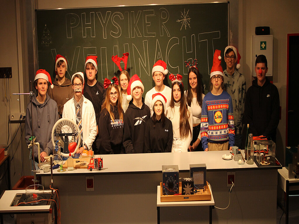 Wieder bot die physikalische Weihnachtsvorlesung den Schülerinnen und Schülern der fünften Klassen eine kurzweilige Weihnachts- und Silvesterparty, die sie hoffentlich neugierig auf das neue Fach Physik machte, das auch irgendwann ihren Stundenplan bereichern wird. Mit einem gemeinsam gesungenen Weihnachtslied ging die Veranstaltung zu Ende und hinterließ alle Teilnehmerinnen und Teilnehmer mit dem guten Gefühl, dass der große Physiker Albert Einstein wieder einmal das Weihnachtsfest gerettet hatte.
