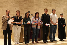 Zu Beginn des Gottesdienstes der bis auf den letzten Platz gefüllten Johanneskirche blickten Luisa Paulus vom Gymnasium an der Heinzenwies und Max Schwickert vom Göttenbach-Gymnasium auf die gemeinsame Schulzeit zurück. Vor neun Jahren hätten sie sich nicht vorstellen können, an diesem Abend hier zu stehen. Sie blickten auf den anstrengenden Online-Unterricht in der Coronazeit zurück und bemerkten, dass sich mit Beginn der Oberstufe Schule noch einmal völlig verändert habe. Gemeinsam seien sie durch neun Jahre Schule gegangen und als Stufen zusammengewachsen. An all dem zusammen Erlebten seien sie gewachsen. Die Schulzeit sei eine schöne Zeit gewesen, doch nun gelte es, ein neues Kapitel aufzuschlagen.