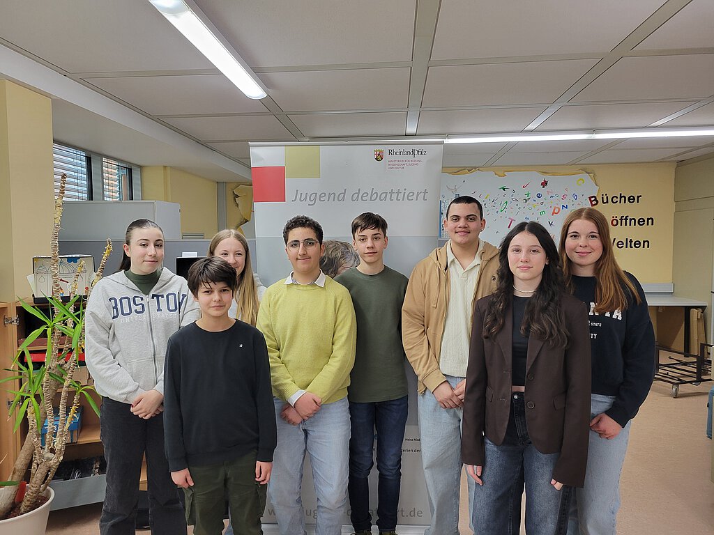 Acht Schülerinnen und Schüler der Klasse 8c nahmen am diesjährigen Regionalwettbewerb „Jugend debattiert“ teil, der am 11.03.2025 am Göttenbach-Gymnasium ausgetragen wurde. Insgesamt waren beim Regionalwettbewerb die beiden Idar-Obersteiner Gymnasien, das Gymnasium Birkenfeld, das Gymnasium Kirn und das Lina Hilger-Gymnasium aus Bad Kreuznach vertreten. Die Heinzenwielerinnen und Heinzenwiesler waren sowohl als Debattanten im Bereich der Sekundarstufe I als auch als Juroren im Einsatz. Omar Odat Allh, Jannic Samuels und Emil Conradt debattierten in der ersten Debatte die Frage, ob Dialekte verpflichtend in der Schule unterrichtet werden sollen. In der zweiten Debatte ging es dann um die Frage: „Sollen Städte und Gemeinden etwas gegen Einsamkeit tun?“ Als Juroren gaben Hannah Schmell, Mara Bongardt, Mareike Heß, Denisa Toporoceanu und Pauline Molz Rückmeldung zu den gesehenen Debatten.
