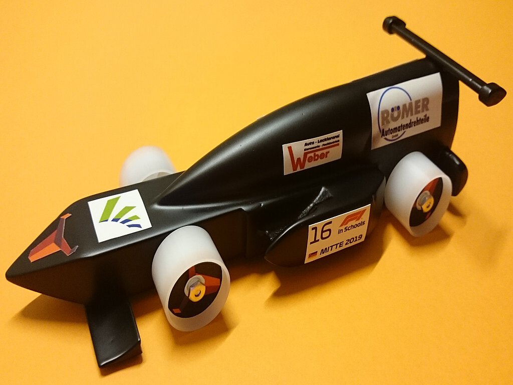 Doch diese ganzen Überlegungen und Pläne wären wertlos gewesen, hätten die Diamond Bulls nicht die passenden Partner gefunden, die sie sowohl in der Planungsphase, als auch in der Fertigung des Autos großzügig unterstützt haben. Hier ist allen voran die Firma Automatendrehteile Römer in Niederwörresbach zu nennen, die direkt und ohne zu zögern die Fertigung der Räder und Achsen zusicherte und zudem die weiteren entscheidenden Firmenkontakte herstellte. So war es zwei der Schüler möglich, den Umgang mit der CAD-Software in einem einwöchigen Praktikum in den Herbstferien bei der Firma Effgen in Herrstein soweit zu erlernen, dass sie anschließend selbstständig ihr Auto nach den Maßgaben des 20-seitigen technischen Regelwerks bis zu den Weihnachtsferien fertigstellen konnten. Die Front- und Heckspoiler wurden zwischenzeitlich von der Firma Horbach in Idar-Oberstein im 3D-Druck hergestellt, bei denen sich die Gruppe letztlich für eine Kombination aus Anpressen und Heben entschied. Auch die speziell angefertigte Räder- und Achsenkombination aus POM und Alu mit doppelter Keramikkugellagerung, die in direkter Zusammenarbeit mit der Firma Römer entwickelt wurde, konnten noch im alten Jahr getestet werden.