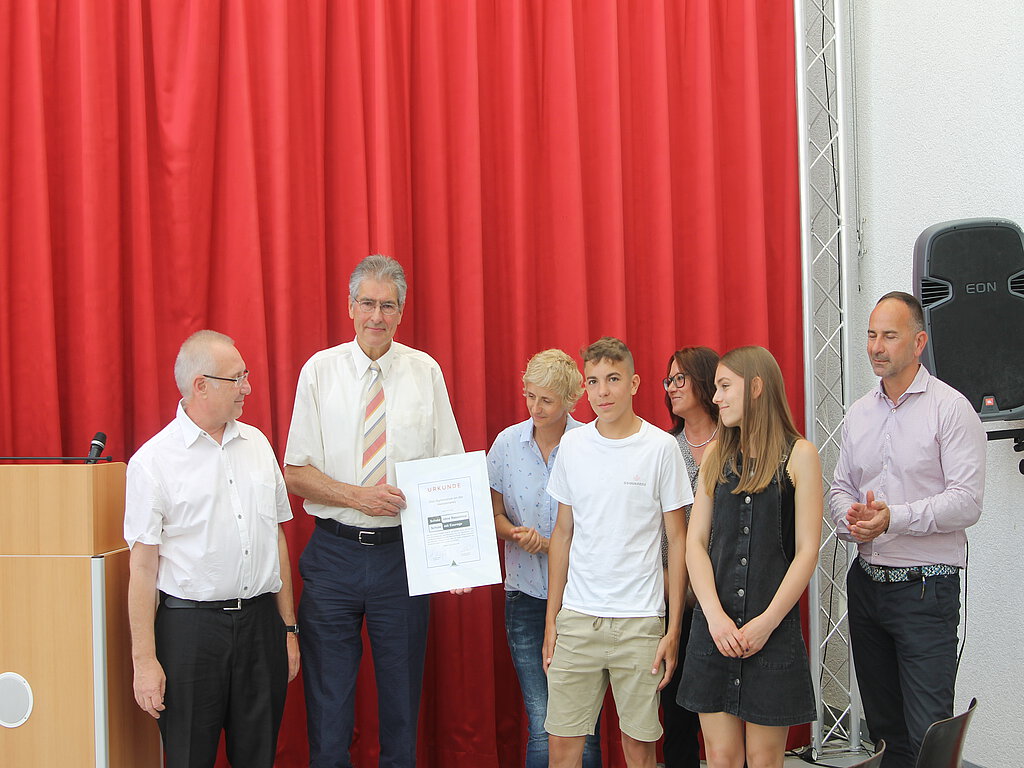 „Schule mit Courage – Schule ohne Rassismus“ – das wollen wir werden. Der Entschluss des Sozialkundeleistungskurses der MSS 11 des Gymnasiums an der Heinzenwies war schnell gefasst und voller Elan gingen die Schülerinnen und Schüler mit ihrer Sozialkundelehrerin Anne Kröninger daran, das Projekt zu verwirklichen. Zunächst wurde allen Heinzenwieslern das Projekt vorgestellt und dann folgte die Abstimmung. Alle Schülerinnen und Schüler sowie alle Mitarbeiterinnen und Mitarbeiter an der Schule wurden befragt, ob sie das Projekt an der Heinzenwies verwirklichen wollen. Überwältigende 89% sprachen sich dafür aus, den Titel zu beantragen und mit verschiedenen Aktionen Demokratie und Menschenrechte zu fördern. Nun entwarfen die Elftklässler ein Wandgemälde, das sie im Eingangsbereich der Schule gestalteten und in dem das nun verliehene Schild mit dem Titel seinen Platz findet. In einer Feierstunde stellten die Schülerinnen und Schüler nun ihre Motivation nochmals vor, ein friedliches und respektvolles Miteinander in der pluralen Gesellschaft sei ihr Ziel. Sie kündigten an, dass als eine erste Aktion die Projektwoche im kommenden Schuljahr unter dem Motto „Schule mit Courage - Schule ohne Rassismus“ stehen wird. Drei Tage werden sich alle Heinzenwiesler mit Projekten rund um das Thema Rassismus beschäftigen. Auch ein Stolpersteinprojekt wollen sie aktiv unterstützen. Als Schulpate konnte der SC Idar gewonnen werden. Zum Abschluss überreichte Dr. Albrecht Gill die Ernennungsurkunde an Schulleiter Werner Lehnen.