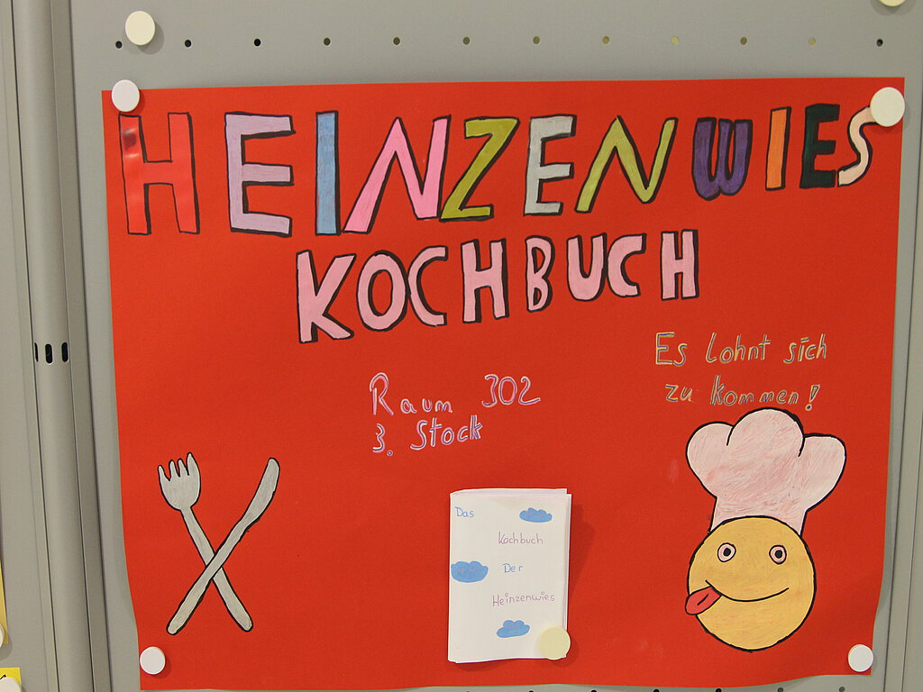 Viele wollten am Tag der offenen Tür das tolle Heinzenwies-Kochbuch erwerben, das eine Projektgruppe unter der Leitung der Lehrerinnen Marie Heinrich und Jessica Friesen in liebevoller Detailarbeit erstellt hat. Da aber die Druckkosten zu hoch wären, steht das Kochbuch nun in digitaler Form auf unserer Homepage zum Herunterladen oder Ausdrucken zur Verfügung. Unter der Rubrik Schulküche/Heinzenwies-Kochbuch kann das Kochbuch eingesehen werden.