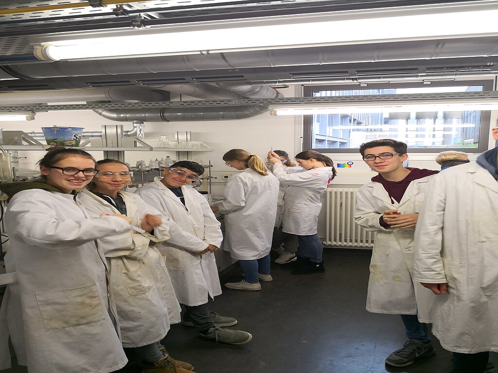 Wie sieht die Arbeit in einem Chemielabor aus? Die Klasse 9a konnte dies nun selbst an der Universität des Saarlandes testen. Mit ihren Chemielehrern Oliver Ast und Dr. Markus Mitrenga besuchten die Schüler am 27. November 2018 das Schülerlabor Biolab der Universität und erhielten die Gelegenheit zum Kennenlernen der Laborarbeit. Die Schüler durften eigenständig Versuche zum Thema Alkohole durchführen: Wein wurde destilliert, verschiedene Alkohole getrennt und der Alkoholgehalt im Wein bestimmt. Vor allem im Blick auf die künftige Studien- und Berufswahl erhielten die Schüler interessante Einblicke in den Laboralltag. Und dieser Einblick ging noch weiter: Im Anschluss stand nämlich noch der Besuch der Fachrichtung Pharmazie der Universität und die Vorstellung des Studiengangs „Pharmazie“ durch PD Dr. M. Frotscher auf dem Programm.
