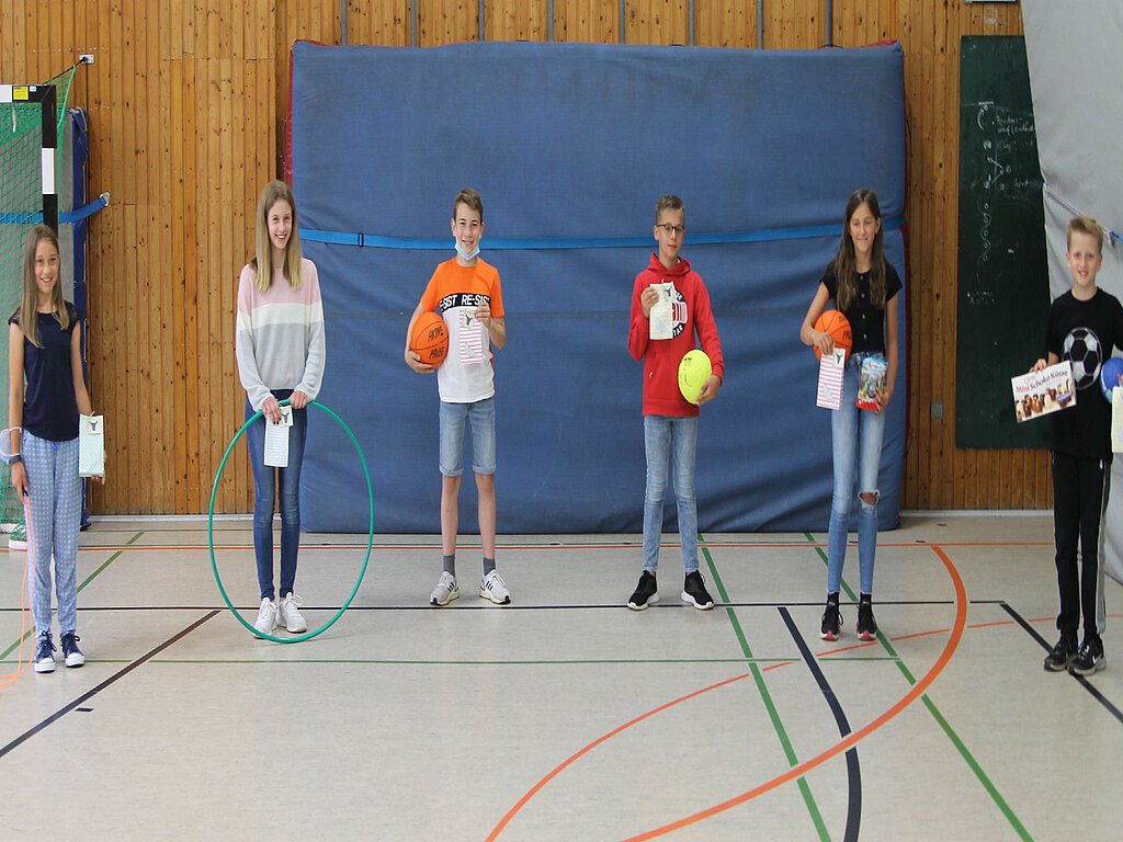 Die aktivsten Schülerinnen und Schüler wurden kurz vor den Sommerferien bei einer kleinen Ehrung durch die Sportlehrer der Stufe 5 ausgezeichnet und erhielten eine Heinzenwies-Tüte mit Leckereien.