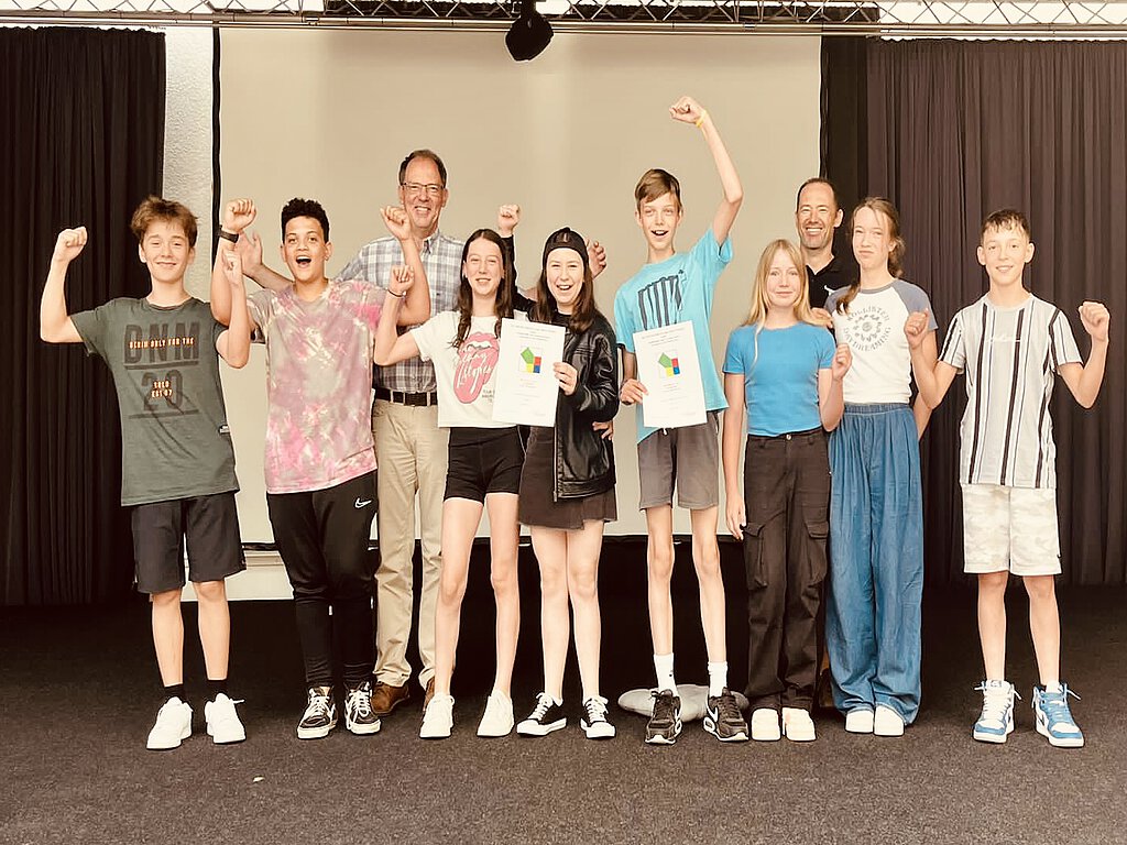 Die großen Heinzenwiesler ab Klasse 10 nehmen seit Jahren erfolgreich daran teil - an dem Wettbewerb „Mathe ohne Grenzen“, dem europäischen Mathe-Wettbewerb für ganze Schulklassen. Bei der Bearbeitung der Denksport- und Bastelaufgaben organisieren sich die Klassen selbstständig und müssen zusammenarbeiten. Nun waren bei „Mathe ohne Grenzen Junior“ auch die jüngeren Heinzenwieslerinnen und Heinzenwiesler erfolgreich. Die Klassen 6c und 6d teilen sich den ersten Platz punktgleich mit 98 %der möglichen Punkte. Die Klasse 6c konnte im Vorjahr als bisher einzige Klasse den Wettbewerb als fünfte Klasse gewinnen.