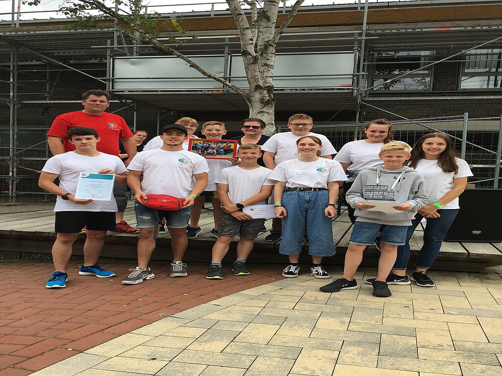 Am Sonntag, den 16.6.2019, machten sich neun unserer Schulsanitäter zusammen mit der Verbindungslehrerin Frau Lehnen und ihrem Ausbildungsleiter Herrn Bohn auf den weiten Weg zum JRK Bezirkswettbewerb nach Altenkirchen.