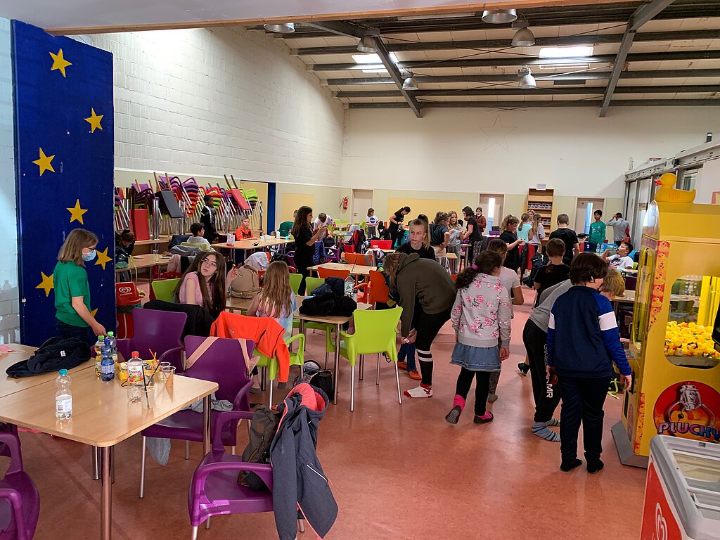 Groß war die Freude, als die Stufe 6 erfuhr, dass noch vor den Herbstferien ein gemeinsamer Wandertag auf dem Programm steht. Der Corona-bedingt ausgefallene Besuch des Sternenlands im letzten Schuljahr, der traditionell für die Stufe 5 vorgesehen ist, konnte auf diese Weise doch noch stattfinden. Bei kühlem, aber trockenem Herbstwetter machten sich die über 70 Schülerinnen und Schüler auf den Weg Richtung Georg-Weierbach. Begleitet wurden sie von ihren Klassenlehrern und dem Orientierungsstufenleiter sowie vier Paten aus der Stufe 12. Nachdem alle kräftig marschiert waren, konnten die Schüler das komplette Sternenland in Beschlag nehmen. Der Auto-Scooter, die Rutschen und das Fußballspielen auf dem Kleinfeld waren besonders beliebt. Die Lehrer lobten das reibungslose Miteinander, sodass am Ende alle zufrieden den Heimweg antraten - nun allerdings mit den Elterntaxis.