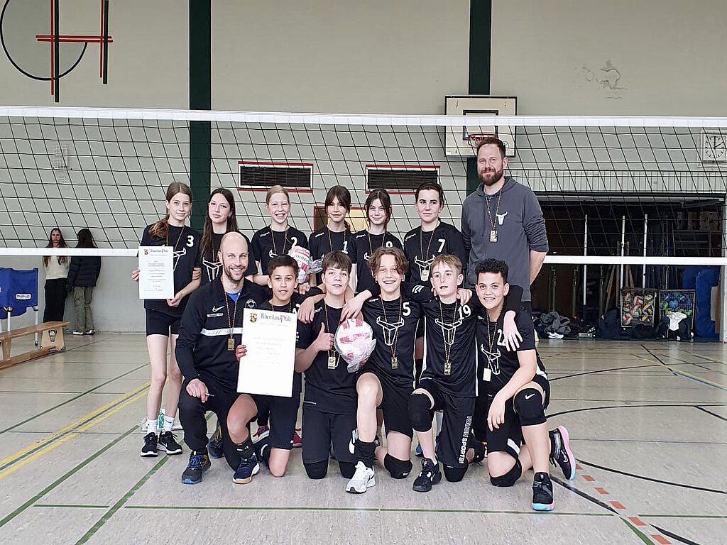 Nach einer Durststrecke von 16 Jahren holte das Jungen-Team unserer Schule erstmals wieder den Volleyball-Landesmeistertitel in der Wettkampfklasse IV in die Schmuckstadt. Dabei mutierte die eigene Schulturnhalle zwischendurch zu einem wahren Hexenkessel; laute „Heinzenwies“-Sprechchöre der zuschauenden Mitschüler peitschten die beiden Teams unserer Schule an. Denn auch unsere Mädchen boten bei ihrer ersten Turnierteilnahme eine beachtliche Leistung und landeten am Ende auf dem dritten Rang.