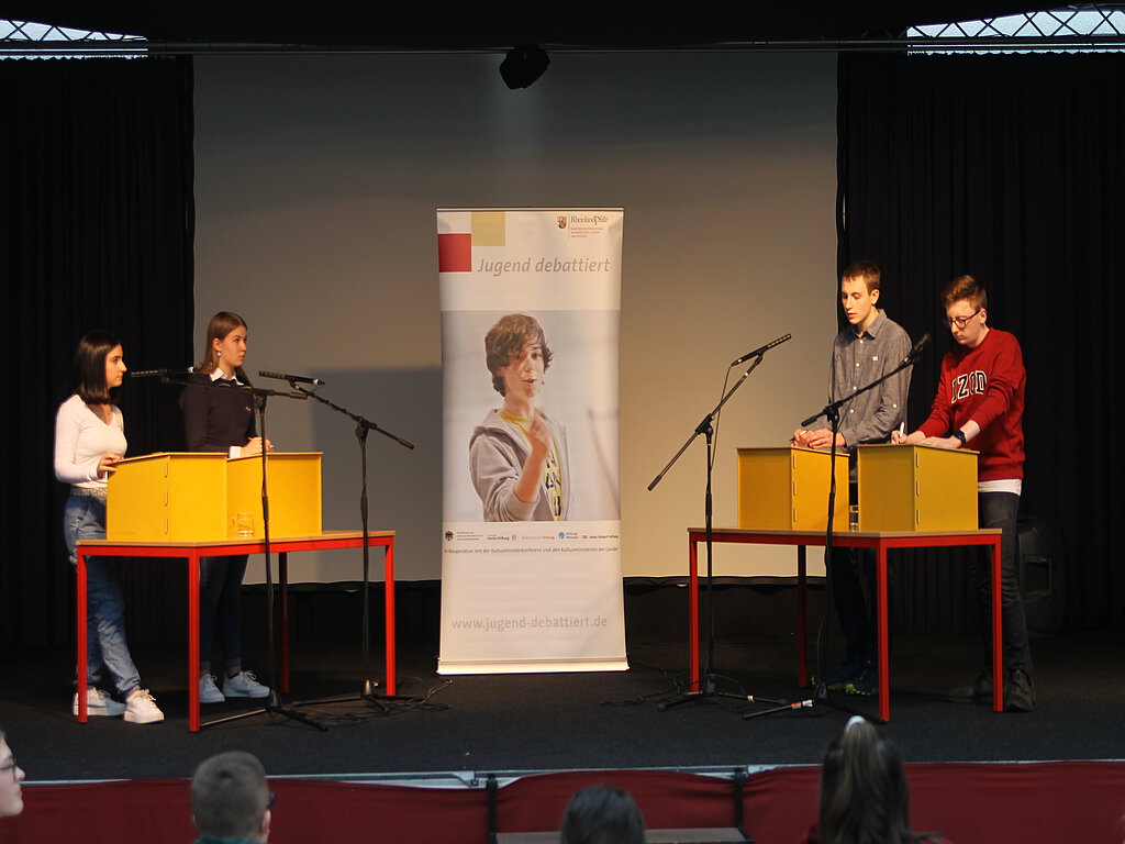 Im Bereich der Sekundarstufe 1 gewann Kim Roth vom Gymnasium an der Heinzenwies, gefolgt von Tim Dries vom Göttenbach-Gymnasium. Sie setzten sich in einer Debatte zum Thema „Soll die Schule Schülerinnen und Schüler besonders belohnen, die sich in ihrer Freizeit gesellschaftlich engagieren?“ gegen Marvin Schild (Alfred-Delp-Schule) und Lilly Henrichs (Lina-Hilger-Gymnasium) durch. Wie immer waren Ausdrucksfähigkeit, Gesprächsführung, Überzeugungskraft und Sachkenntnis die entscheidenden Kriterien, die die Jury bei ihrer Entscheidung zugrunde legte.