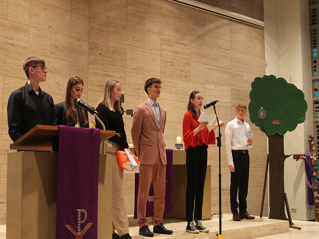 Unter dem Motto „Wurzeln, die uns Flügel schenken“ feierten die Abiturientinnen und Abiturienten des Göttenbach- und des Heinzenwies-Gymnasiums am vergangenen Mittwochabend ihren traditionellen gemeinsamen Abiturgottesdienst in der Johanneskirche. Luka Kaiser und Vadim Schreiner begrüßten die Anwesenden und luden ein, gemeinsam inne zu halten, die letzten Jahre voller Herausforderungen Revue passieren zu lassen, aber auch nach vorne zu blicken. So betonten auch Leopold Busch, Greta Kliebisch, Lisa Klein und Pauline Ziegler in ihren Statements die große Dankbarkeit, mit der sie zurückblickten. Die vergangene Schulzeit, so Greta Kliebisch, sei ein „bunter Teppich voller Erinnerungen“. In dieser Zeit seien ihnen Wurzeln gewachsen, die sie jetzt zuversichtlich in eine neue Zukunft blicken ließen. Und so wünschten sich die Abiturienten: „Lasst uns schauen, wohin uns unsere Flügel tragen werden!“ Das folgende Anspiel setzte sich kreativ mit dem Motto auseinander: An einen selbst gebastelten Baum wurden symbolisch Gegenstände angeheftet, die die Wurzeln und Flügel näher ausdeuteten. Ein Edelstein sollte an die Heimat in der Edelsteinstadt erinnern, ein Schwimmflügel die Sicherheit durch Familie und Freunde symbolisieren, ein Stift darstellen, wie nun jeder in seiner eigenen Handschrift neue Geschichte schreiben wird. Auch Religionslehrer Daniel Kettenhofen beschäftigte sich in seiner Ansprache mit dem Motto des Gottesdienstes. Die Wurzeln seien das Fundament, sie gäben Halt und Identität. Er riet den Abiturienten, die Wurzeln zu pflegen und gleichzeitig die Flügel auszubreiten: „Fliegt mutig in die Zukunft! Die Welt wartet auf euch!“ Musikalisch umrahmt wurde der Gottesdienst von dem Chor des Musikkurses der MSS 13 des Göttenbach-Gymnasiums und dem Orgelspiel der Schüler Jasmin Schneider und Leo Barth. Am Ende baten die Abiturienten um eine Kollekte für den Kindergarten der Lebenshilfe in Göttschied. Dort würde Kleidung wie Matschhosen und Rutschsocken dringend benötigt. Zusammen kam die stolze Summe von 670,00 Euro. Mit dem gemeinsamen Segen der Religionslehrerinnen und –lehrer wurden die Abiturientinnen und Abiturienten in den Frühlingsabend und in ihr neues Leben entlassen.